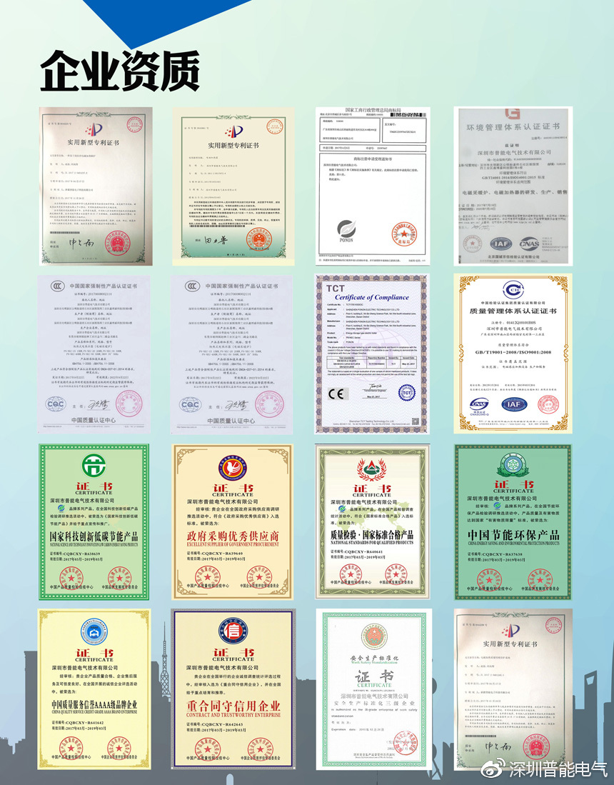 深圳普能电气现研发团队置于全国一线城市深圳,生产线在全国电子制造之乡东莞谢岗镇,厂房占地面积约9000平方,注册资金为2800万元!公司拥有行业资深的研发团队,并具有独立的科技实验室;公司的各项企业资质齐全,并拥有ISO9001、ISO14001、ISO18001、CCC、CE、产品检测报告等各类资质证书。