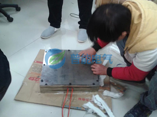 2、原上加热板拆除,换上本公司为该机器定做的电磁加热板和钢板组成的一体板,如下图:为了减少热量散失,钢板的四周固定10mm厚的云母条,钢板尺寸为485*490*30(以下例如),电磁加热板尺寸为505*510*40